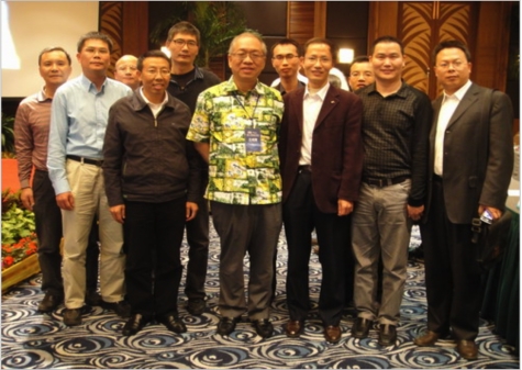 菲尔兹奖首位华人得主(前排右起四)丘成桐先生来校指导工作