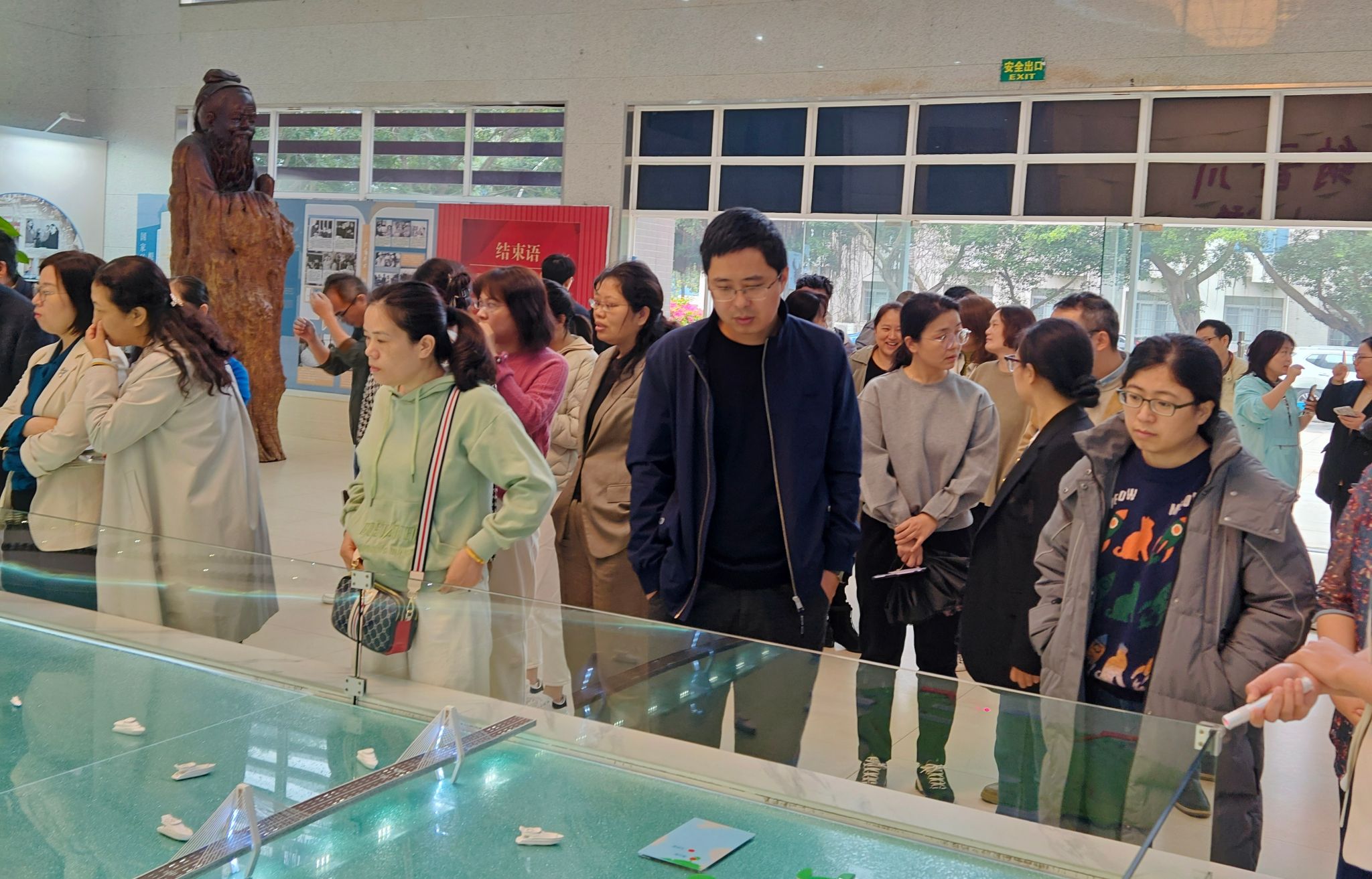 老师们跟随讲解员的讲解,认真观看每一块展板,了解Beat365唯一官方网站自1958年创立以来的几十年风雨历程,了解学校在学科建设、人才培养、国际合作交流等方面的最新发展情况。参观的老师深刻感受到了Beat365唯一官方网站的悠久历史和深厚的文化底蕴,更加认识到了作为一名海大人要爱国爱校,要以国家富强、民族复兴、学校发展为己任。