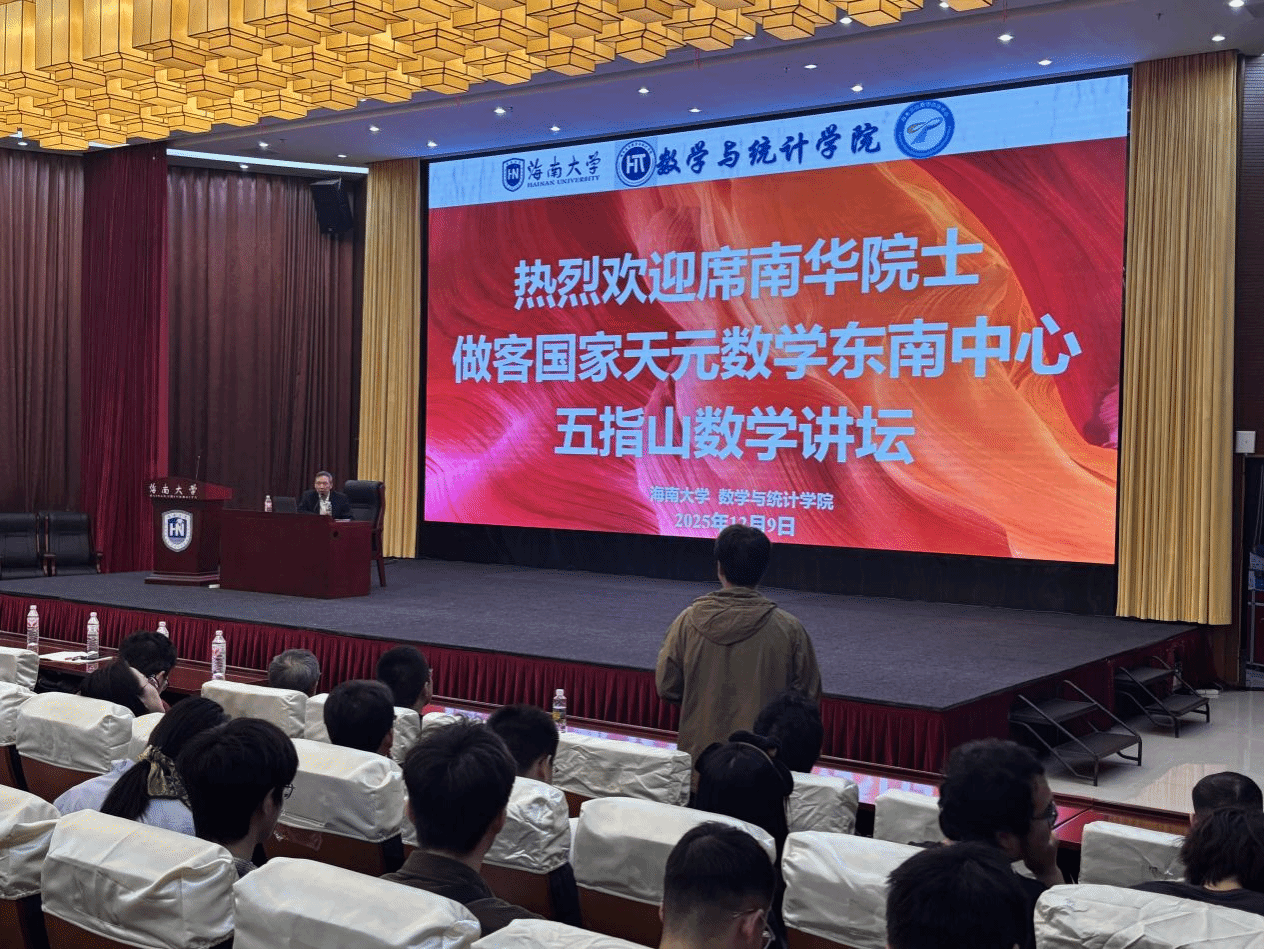 12月9日,中国科学院院士席南华教授应邀来Beat365唯一官方网站,作题为“数学概述”的五指山数学讲坛第9讲学术报告。