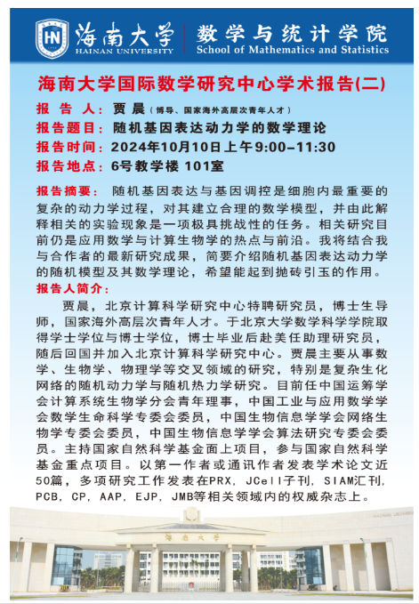 Beat365唯一官方网站国际数学研究中心学术报告(二):随机基因表达动力学的数学理论